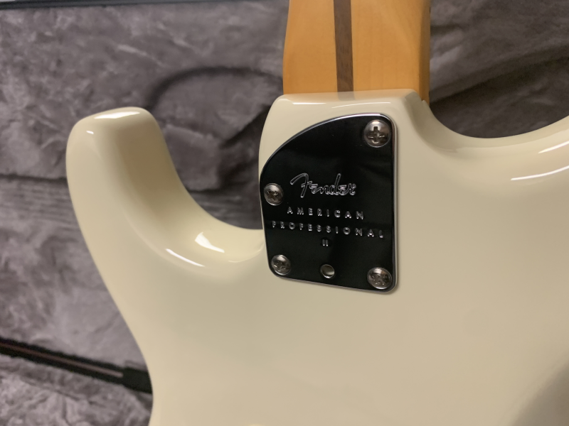 So what is this guitar that captured my attention so immediately? It’s cast me into the stratosphere so to speak. A 2022 Fender Pro II Stratocaster in Olympic White which is very light cream color. I would have preferred the rosewood finger board, but this was the only one in the shop that really called me. Plus the price of $1,200 was looking really good to me coming with a nice case with a lock on it.