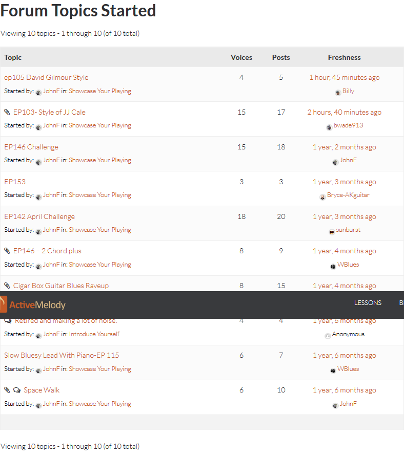 I had a good time learning the licks and then I tried bending the licks for new ideas. I just discovered that I lost all my old posts to AM. I’ve been a member for a few years and have made some posts but they seem to have gone away. I noticed on my profile that there weren’t any media totals. I posted EP103 Style of JJ Cale recently and it is not listed. I’m interested to see what happens to this one. I’m still trying to get comfortable with surfing the site.